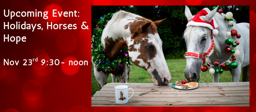 Photos with Horses in Holiday Attire β Families are invited to pose with Crossroads horses decked out in festive gear and with Santa!